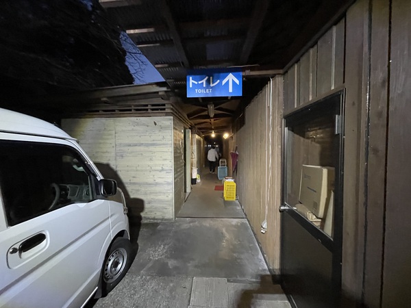 トイレは温泉館の向かいの建物となりRVパークから100mちょとあります。夜は街灯が消灯となり、ガーデニングライトの明かりだけなので、懐中電灯必須です。